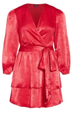 Make a statement in the City Chic Red Satin Wrap Mini Dress. This striking dress features a vibrant red hue and a flattering wrap design, combining boldness with elegance. Perfect for a night out or a special event, pair it with strappy heels and minimal accessories to create a chic and captivating ensemble that exudes confidence and style, making you the center of attention with every step.