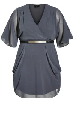 Step into sophistication with the City Chic Slate Grey Chiffon Wrap Dress. This dress combines an elegant silhouette with a touch of allure through its chiffon fabric and wrap design. Elevate your look by pairing it with strappy heels and statement jewelry for a graceful and versatile ensemble that’s perfect for evenings out or special occasions.