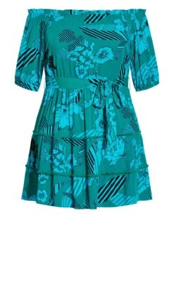 Radiate tropical allure in City Chic’s Teal Green Tropical Print Bardot Mini Dress. The vivid teal hue and exotic print transport you to paradise. The off-shoulder Bardot neckline adds a flirty touch, while the mini length exudes summery charm. Whether at a beach getaway or a vibrant soirée, this dress encapsulates playful sophistication. Elevate your wardrobe with this must-have piece, where bold style meets breezy elegance effortlessly.