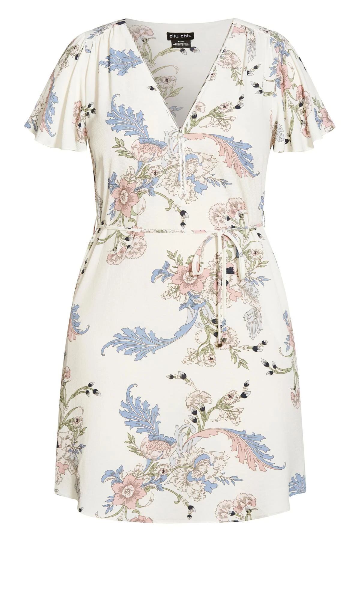 Experience feminine charm with the City Chic White Floral Print Shirt Dress. The delicate white hue meets a captivating floral print, adding a touch of elegance to this dress. Crafted for both style and comfort, its shirt dress design offers a versatile and timeless look, making it a go-to choice for various occasions with a touch of romantic flair.