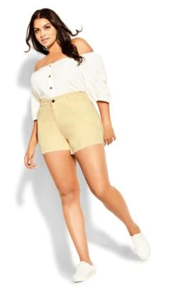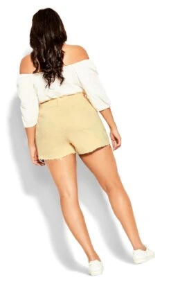 Step into the spotlight with the City Chic Yellow High Waisted Denim Shorts. These shorts offer a vibrant twist to a classic style, featuring a high-waisted design that accentuates your figure while providing a comfortable fit. Embrace sunny days by pairing them with a white crop top and sandals for a casual and effortlessly stylish outfit that captures the essence of laid-back chic.