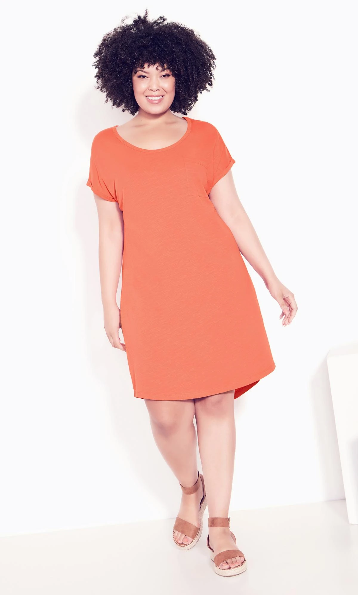 – Curved mini hemline