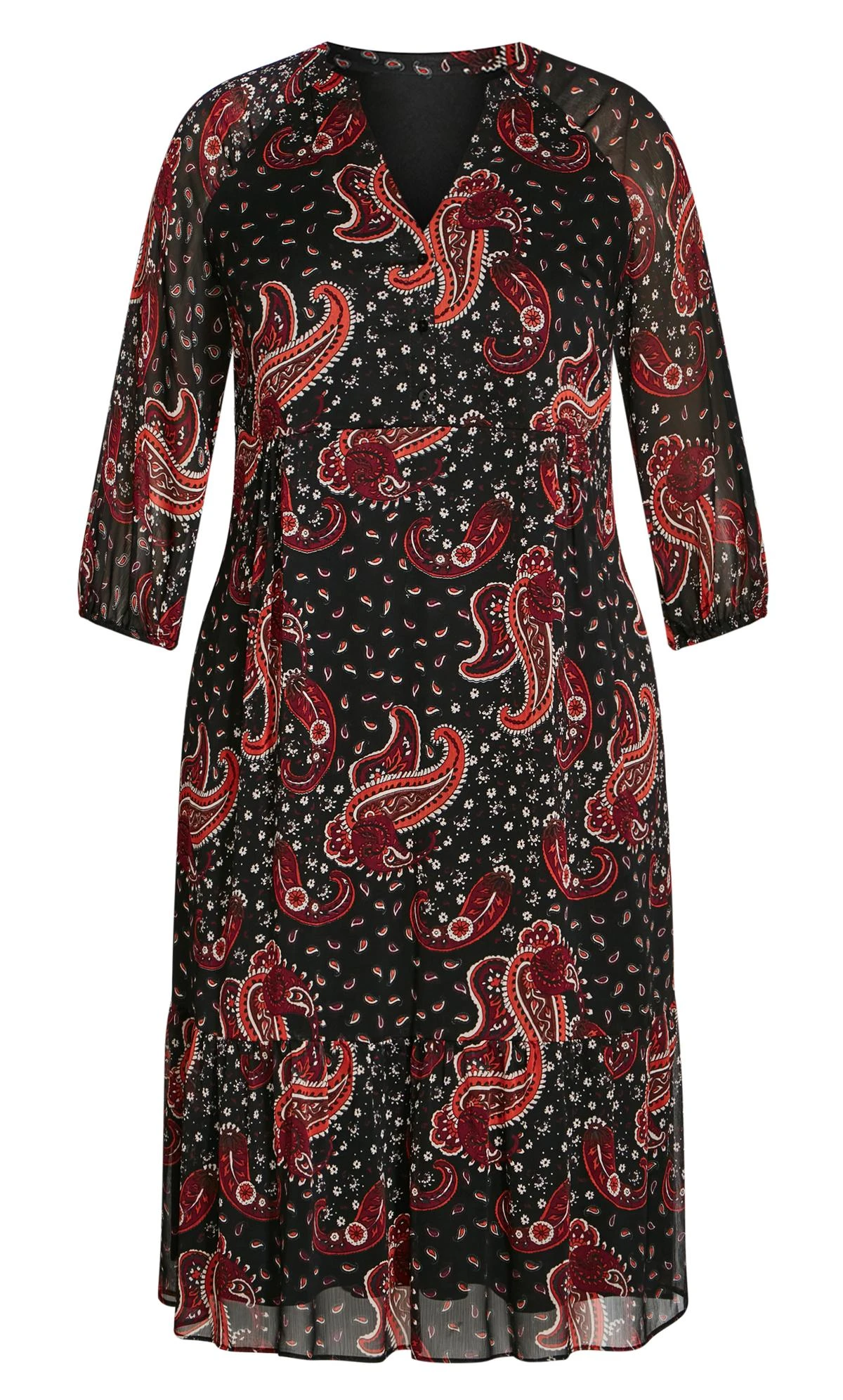Unveil timeless charm in the Evans Black & Red Paisley Smock Midi Dress. A fusion of elegance and boho flair, this dress features a captivating paisley print in bold black and red. The smock silhouette offers comfort and style, making it ideal for versatile occasions. Embrace a chic, free-spirited vibe and turn heads with this enchanting ensemble.