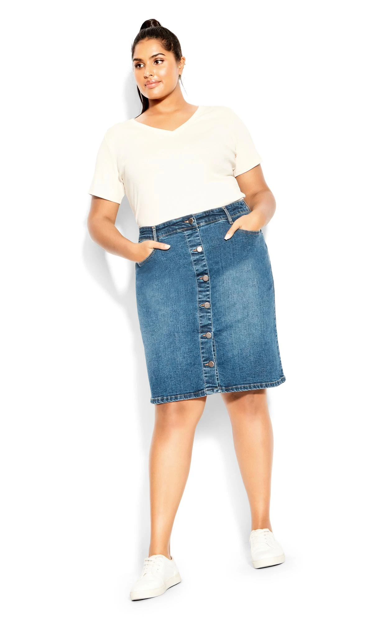 – Knee length hemline