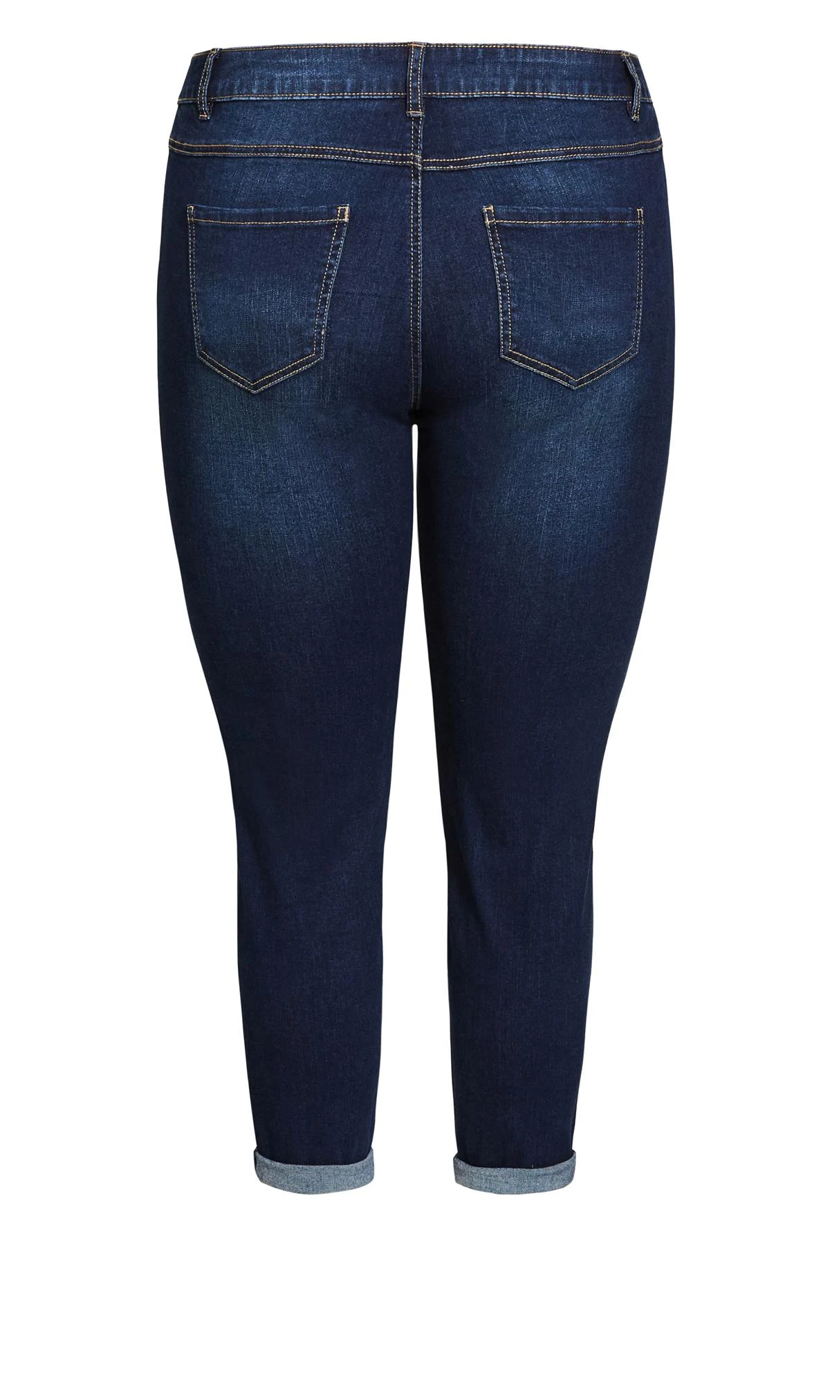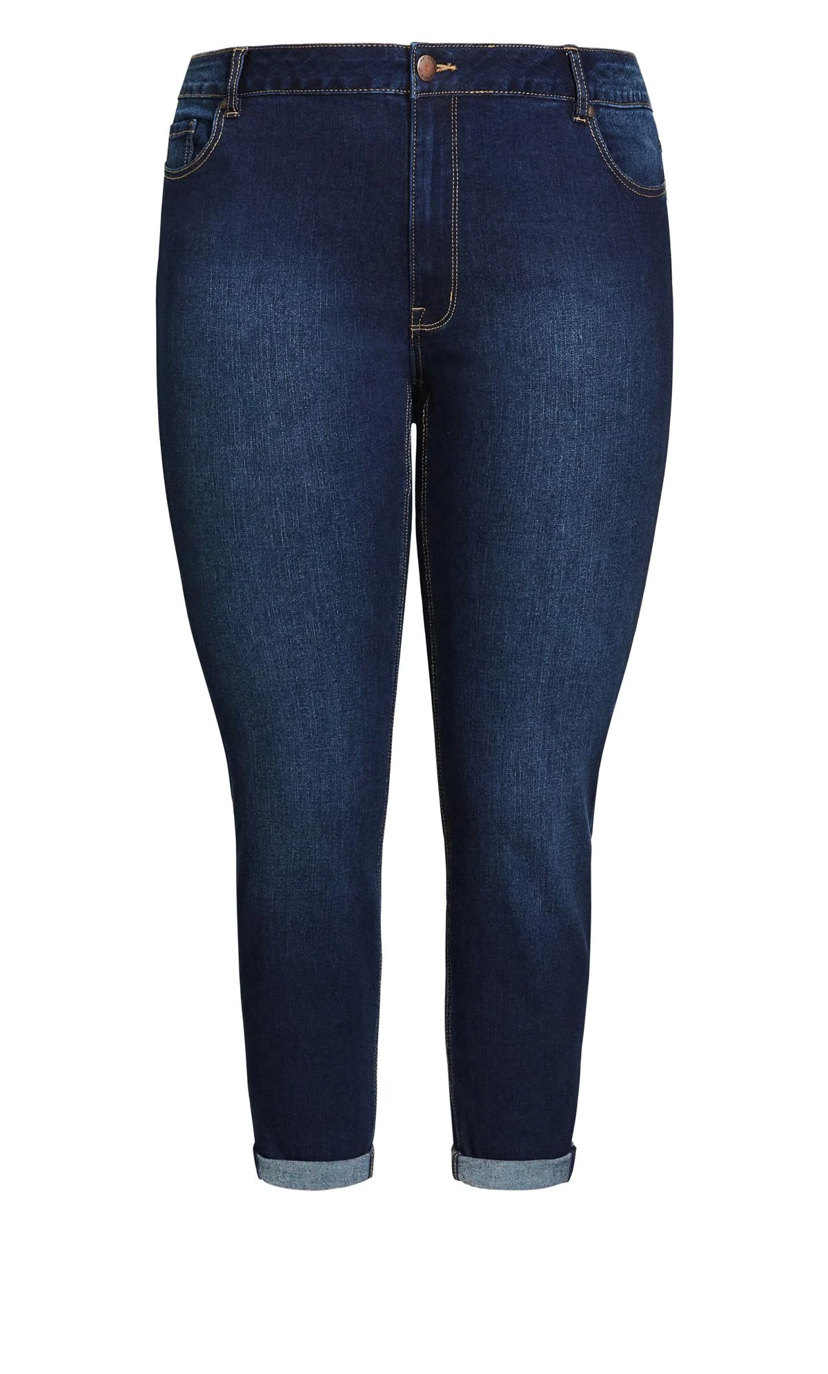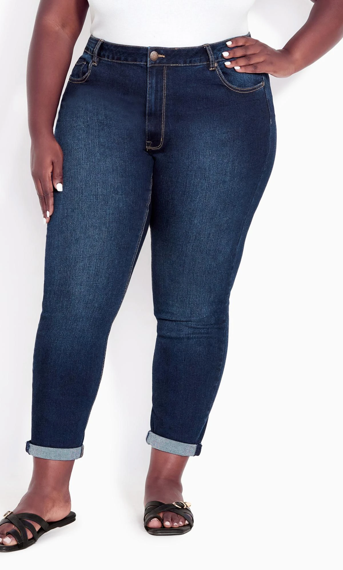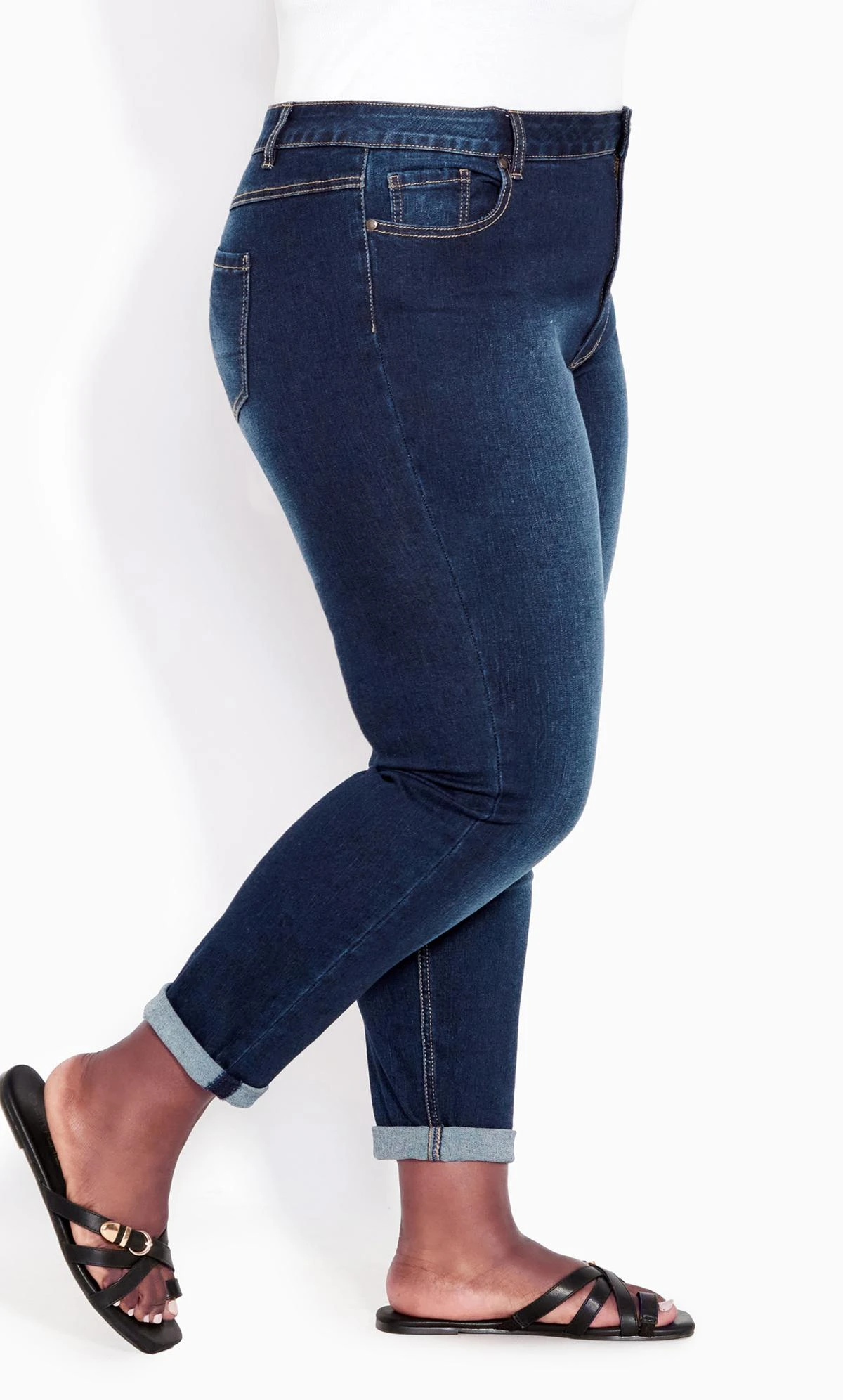 Evans Blue Dark Wash Stretch Girlfriend Jean Regular