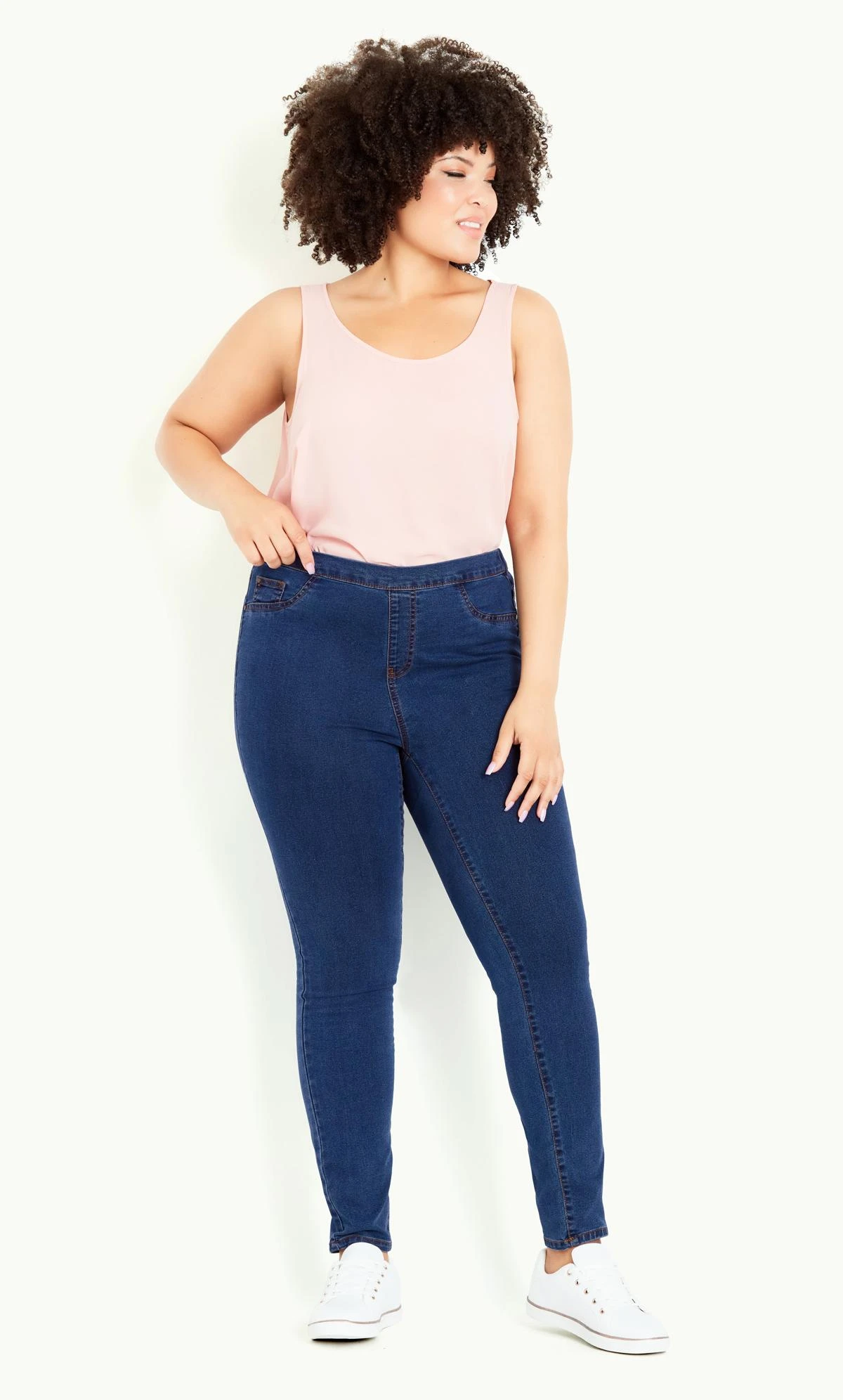 Infuse a pop of color into your wardrobe with Evans Blue Skinny Jeggings. Embodying the perfect marriage of the sleek aesthetic of jeans and the stretchy comfort of leggings, these jeggings contour beautifully to your form. The vibrant blue hue adds a refreshing twist, elevating your everyday style effortlessly.
