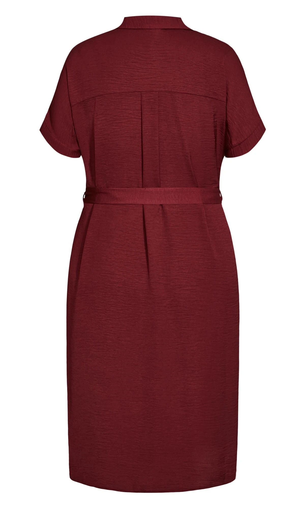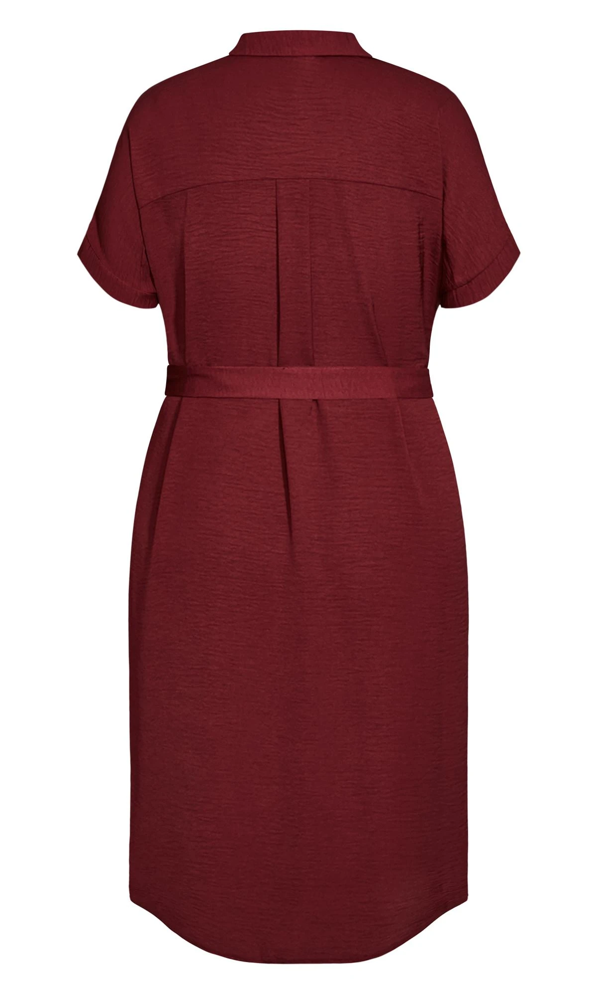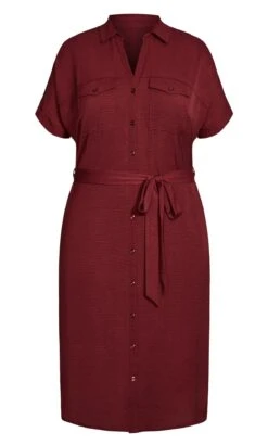 Discover timeless elegance in Evans’ Burgundy Utility Shirt Dress. The deep burgundy hue and utilitarian-inspired design fuse fashion and functionality. Transition seamlessly from day to night in this versatile dress, showcasing your impeccable style with every step.
