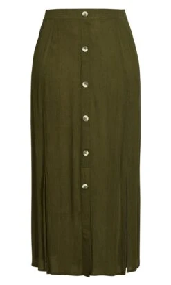Elevate your look with the Evans Khaki Green Button Detail Maxi Skirt. The chic button detailing adds a touch of modern charm to this versatile khaki green skirt. Embrace comfort and style effortlessly, whether it’s a casual outing or a more polished occasion.