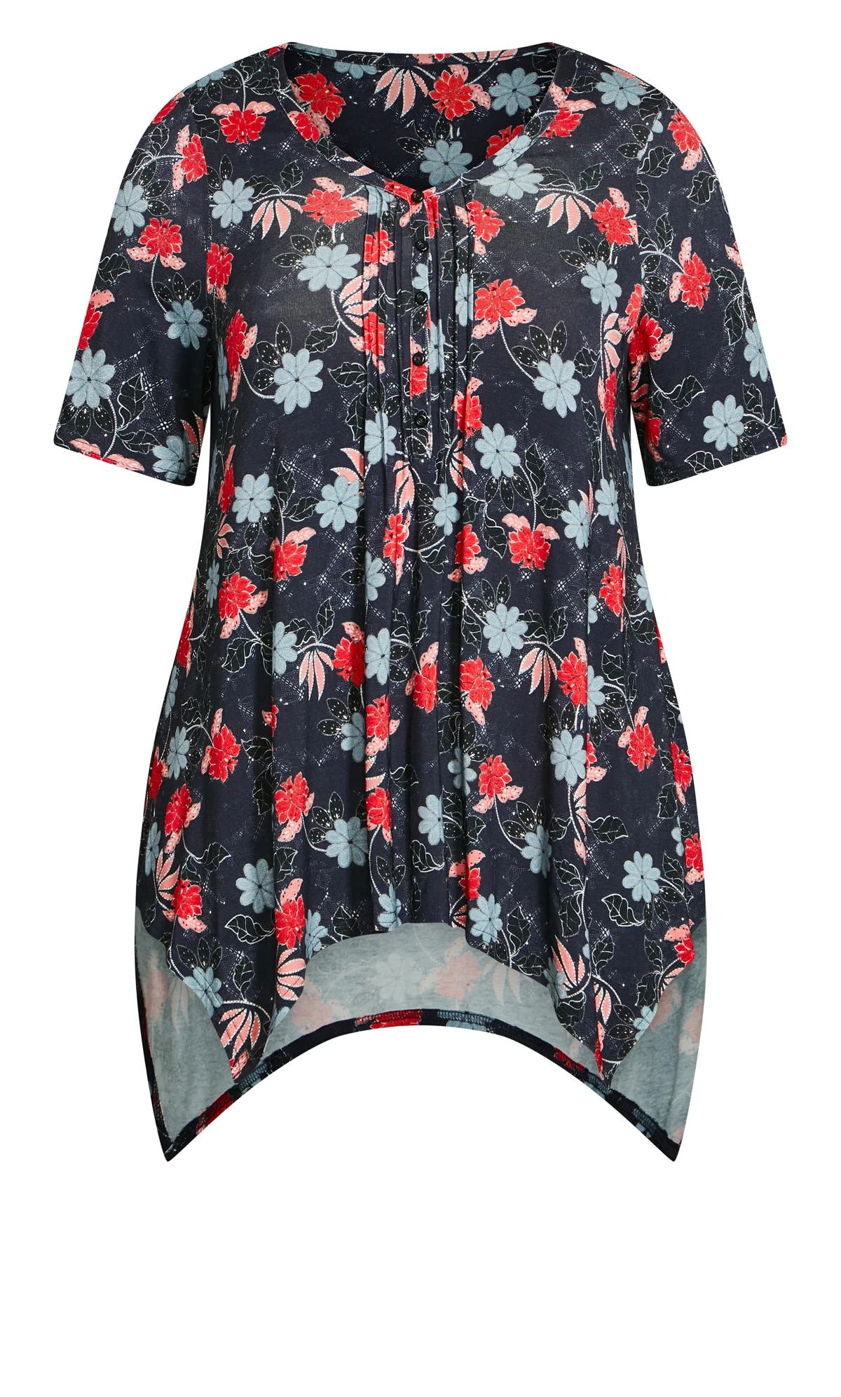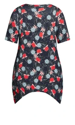 Elevate your style with the Evans Navy & Red Floral Hanky Hem Top. The charming navy and red floral pattern adds a touch of elegance, while the hanky hemline creates a flattering silhouette. Perfect for adding a feminine flair to your ensemble, this top effortlessly blends fashion and comfort, ensuring you radiate confidence and charm in any setting.