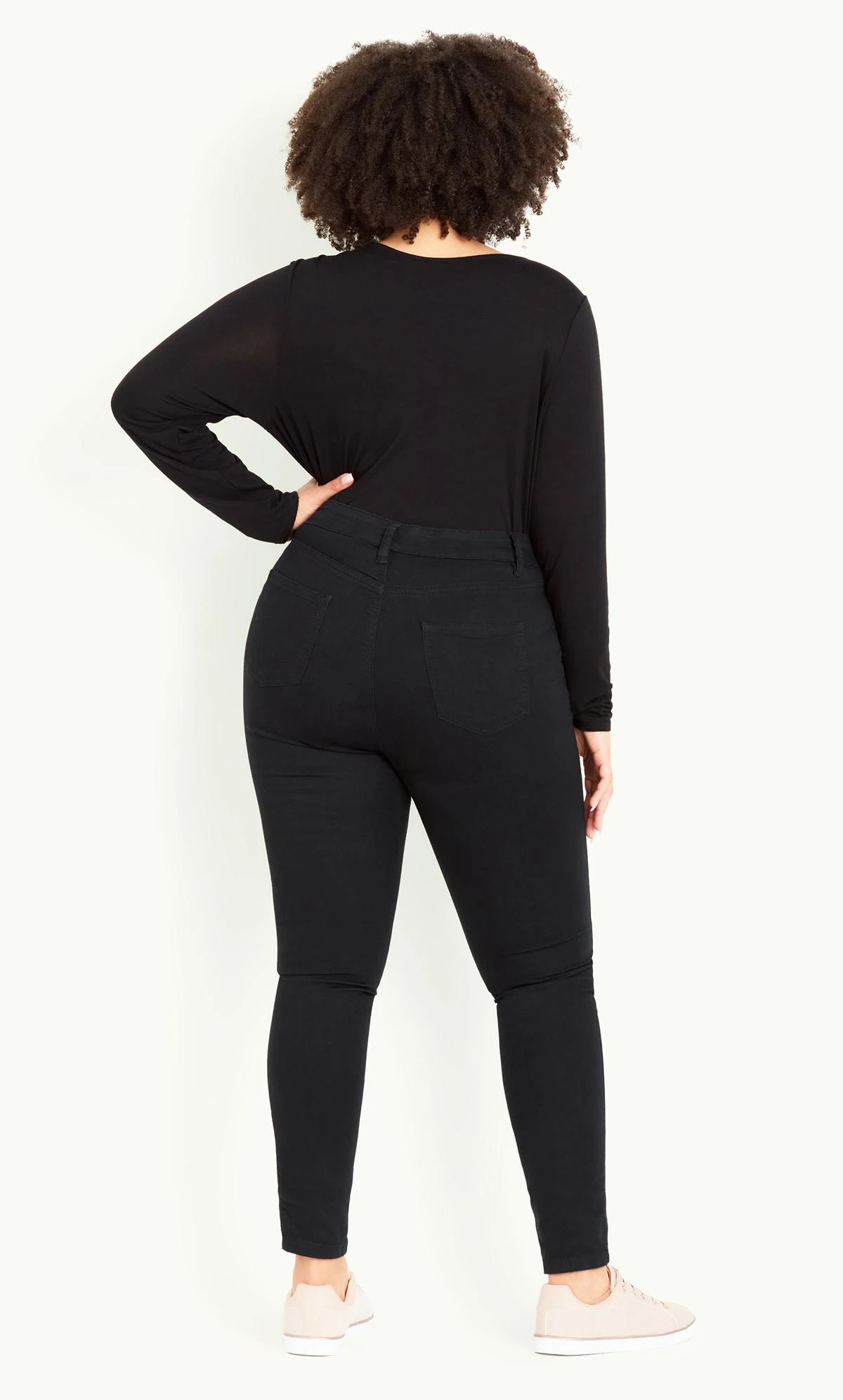 Elevate your denim collection with Evans Black Skinny Jeans. The classic black hue and skinny fit combine for a sleek and versatile look. Designed for both comfort and style, these jeans effortlessly transition from casual to dressed-up, making them a staple choice for creating chic and polished outfits.